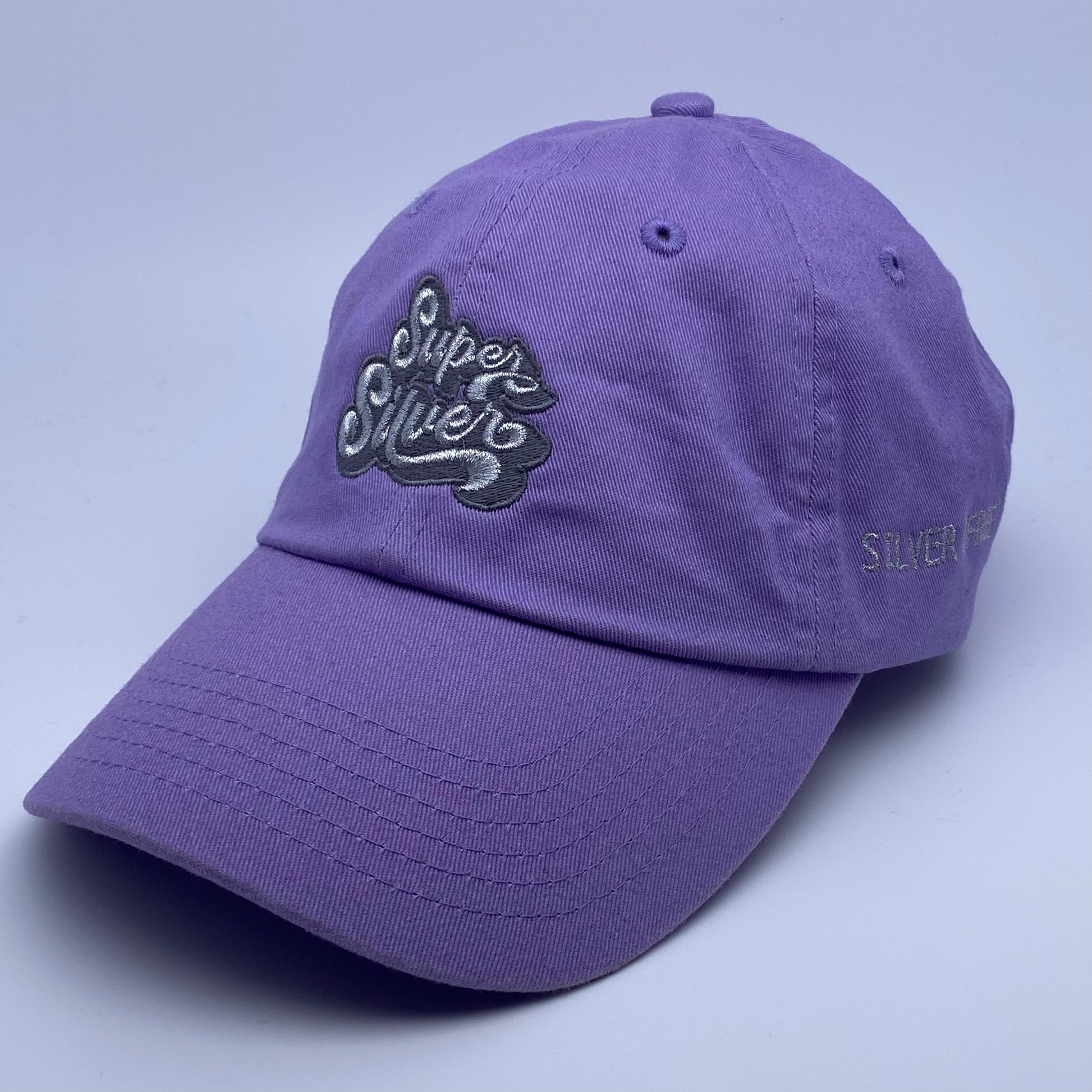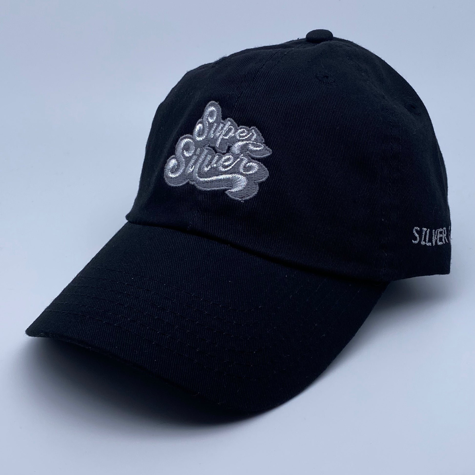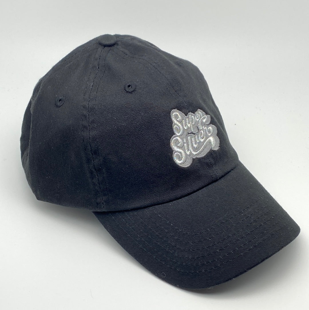 Show off your silver pride! It's a low-profile, unstructured hat made out of a washed cotton twill, embroidered with silver thread. There's a buckle in the back for easy adjustment.